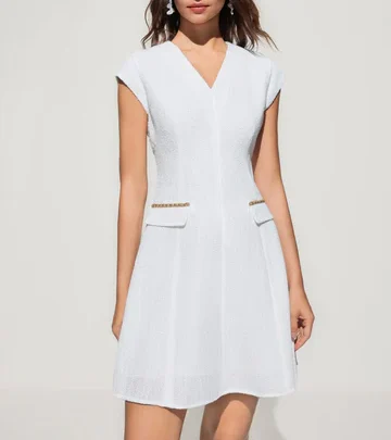 เดรสสำหรับผู้หญิง Fit & Flare Shape สี Off-White